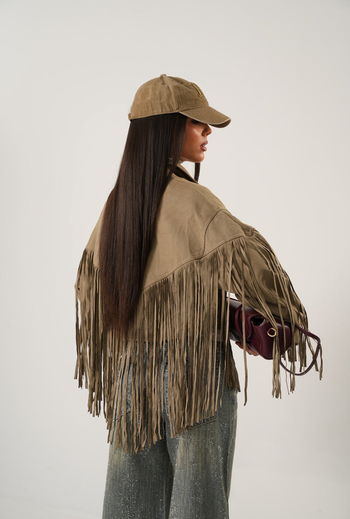 Giacca in ecocamoscio a doppiopetto con frange